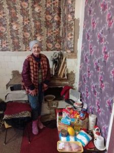 At the hospital, our volunteers heard of her story and started to visit her, and slowly, she became more open to the Lord. Since it was impossible for her to live in her own house, the volunteers found another house in the village where she lived with another family. When Russian invaders arrived again in 2022, after some time, the family evacuated his own family, but Alina refused to leave. Due to constant shelling, this house had no light and our volunteers helped her to repair it. When most people from this region were evacuated and our volunteers repeatedly wanted to help Alina move, she constantly refused.