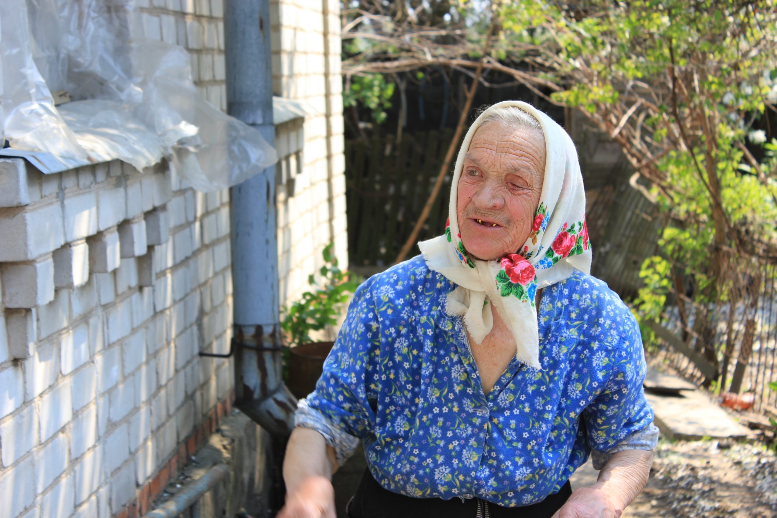 Babushka Olga is 82 years old. She is living in the village Borodyanka, Kyiv Region, in the house of blind old man whom she cares for. Olga has been in our program for several years, and we know her very well. You can read about her life more here.